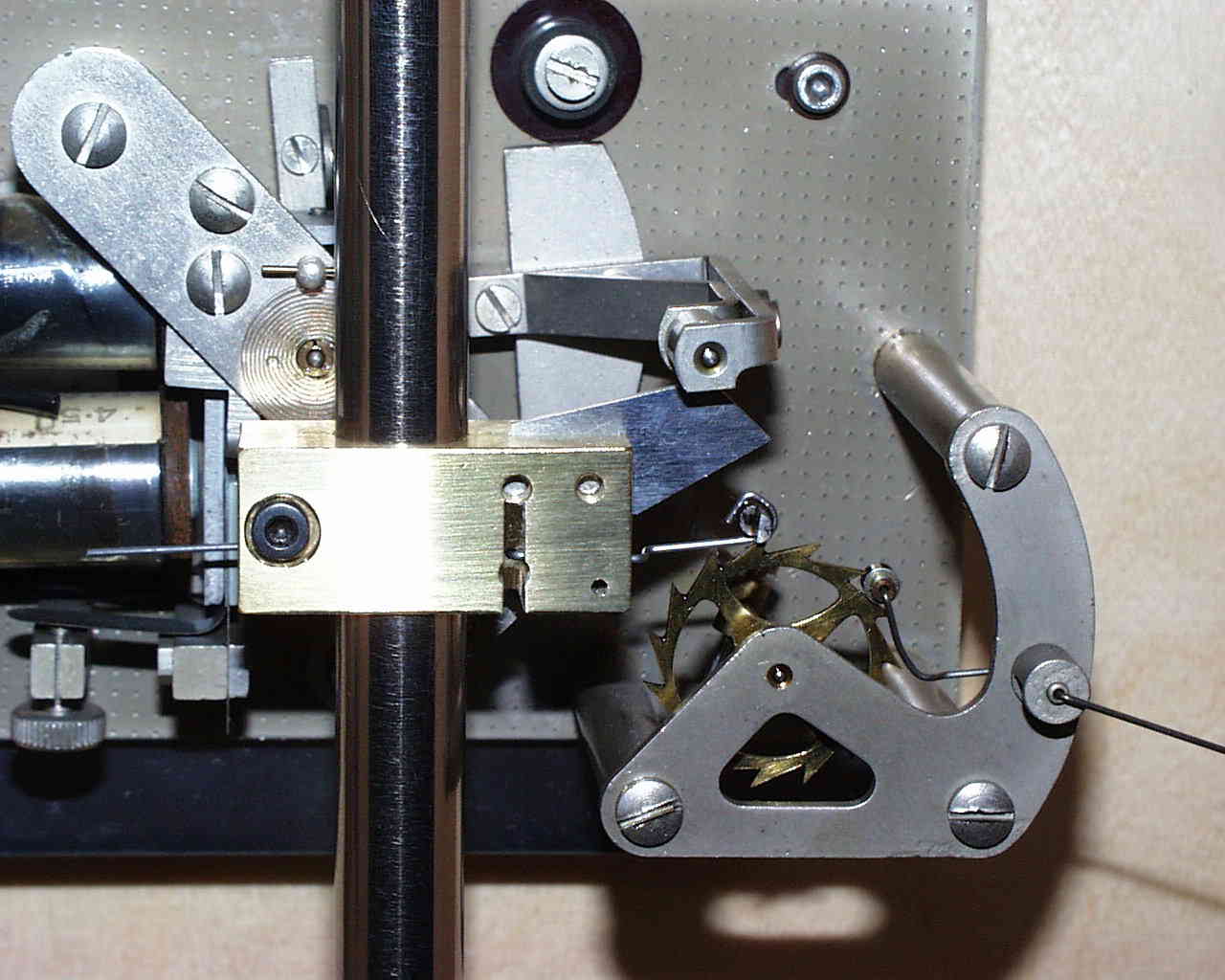 Schwerkrafthebel auslöst. Dieser treibt das Pendel über den